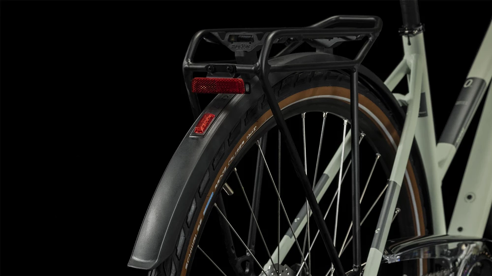 A suspension fork and suspension seatpost help smooth out rough roads. And full-length mudguards, a neatly integrated luggage carrier, built-in dynamo lights and a handy kickstand mean you’ve everything you need for short trips across town and longer forays into the countryside.